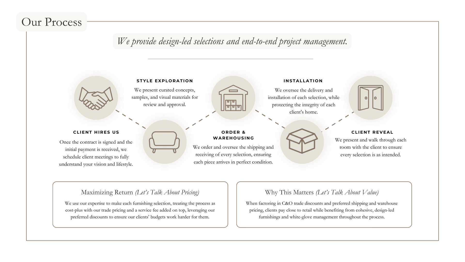 Our team curates furnishings and décor that bring personality and life to every home.